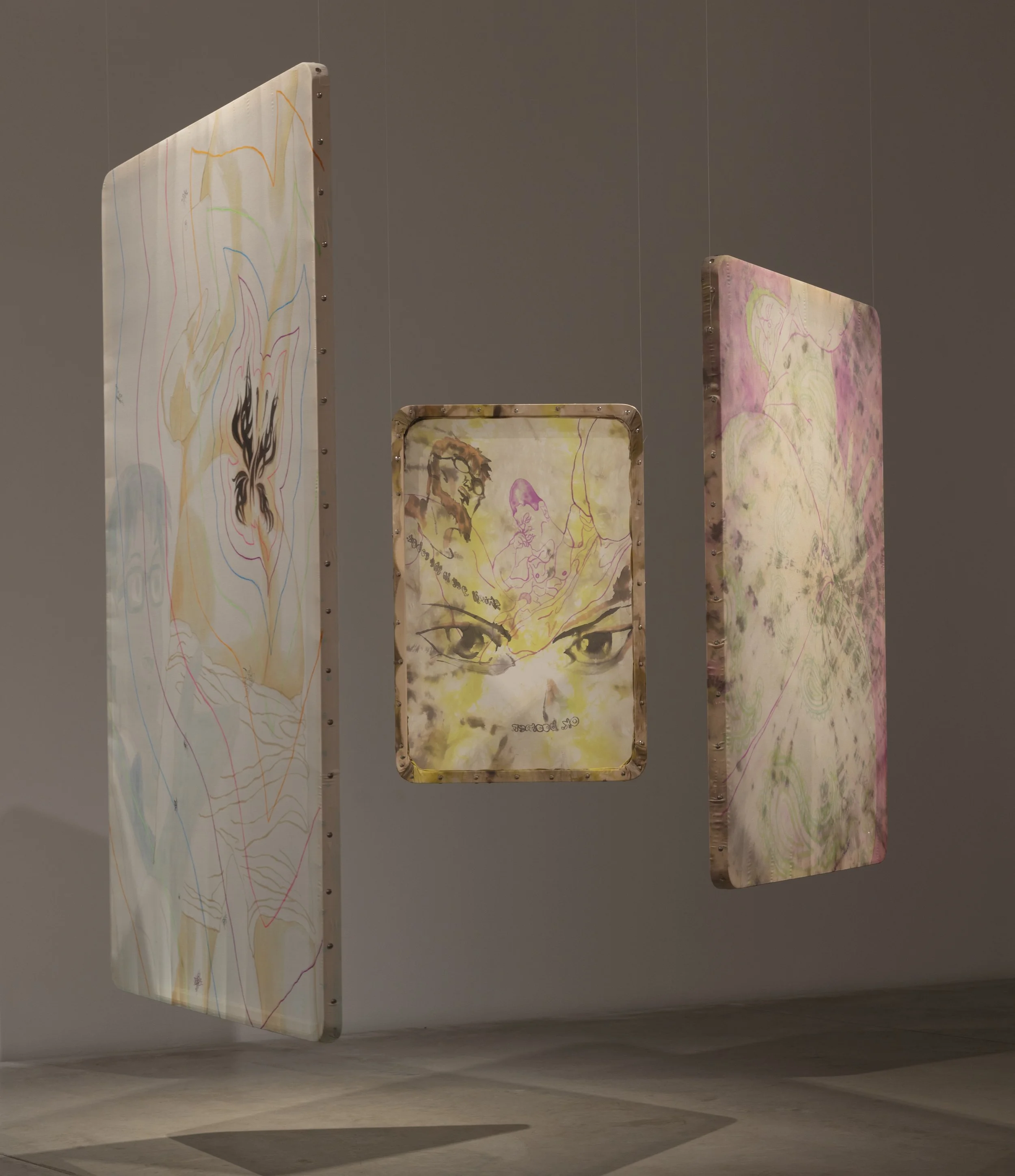 Kaeten Bonli is a Saskatchewan-born, New York-based interdisciplinary visual artist and designer, specializing in abstract painting, textile design and installation. Kaeten’s visual practice centres around themes of queer fantasy, South Asian diasporic motif and pop-cultural critique. Kaeten graduated from Parsons School of Design with a Masters in Fine Arts in 2020, and has been working in the field of production and set design in New York since 2021.